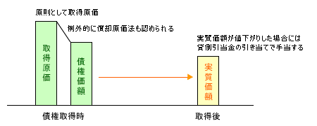 受取手形、売掛金、貸付金その他の債権の貸借対照表価額は、取得価額から貸倒見積高に基づいて算定された貸倒引当金を控除した金額とする。ただし、債権を債権金額より低い価額又は高い価額で取得した場合において、取得価額と債権金額との差額の性格が金利の調整と認められるときは、償却原価法(注5)に基づいて算定された価額から貸倒見積高に基づいて算定された貸倒引当金を控除した金額としなければならない。