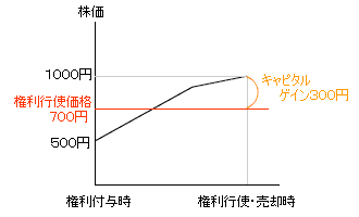 ストックオプションを付与された取締役や使用人は自社の株価が上昇すればストックオプションを行使してあらかじめ定められていた価格で株式を取得し、それを市場で売却することでその差額分の売却益(キャピタルゲイン)を得ることができます。