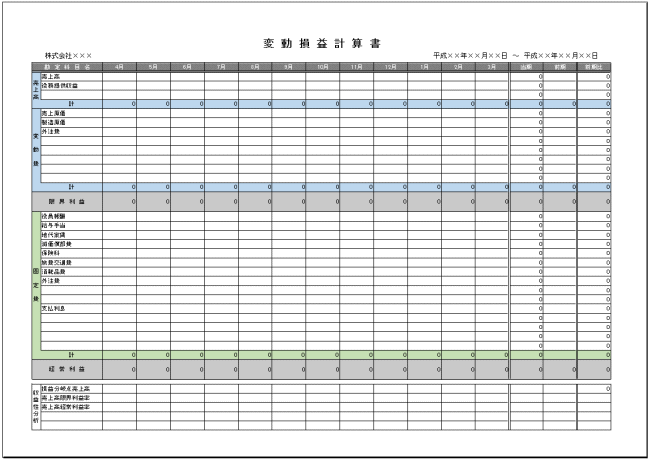 TKCや弥生会計などの会計ソフトから出力されるようなタイプの月次変動損益計算書のExcelテンプレート(ひな形)です。月ごとに損益分岐点売上高が表示されます。 したがって売上目標が毎月明確になり売上高を向上する効果が期待できます。 画像はカラーですがホワイトタイプもシートに追加してあります。